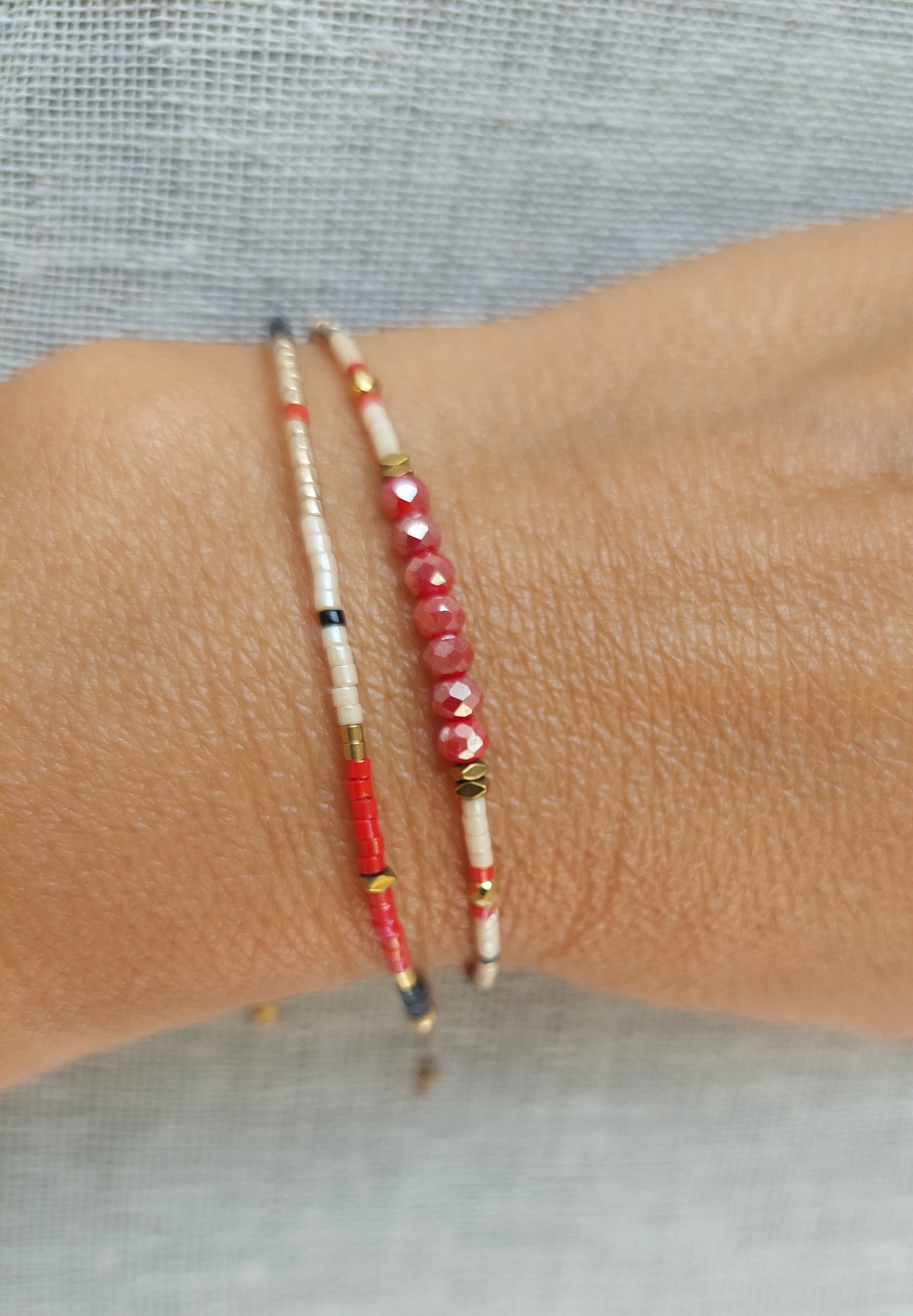- Sur cordon beige finition nœud macramé coulissant ajustable (cordons de réglage pendants finition petites perles)