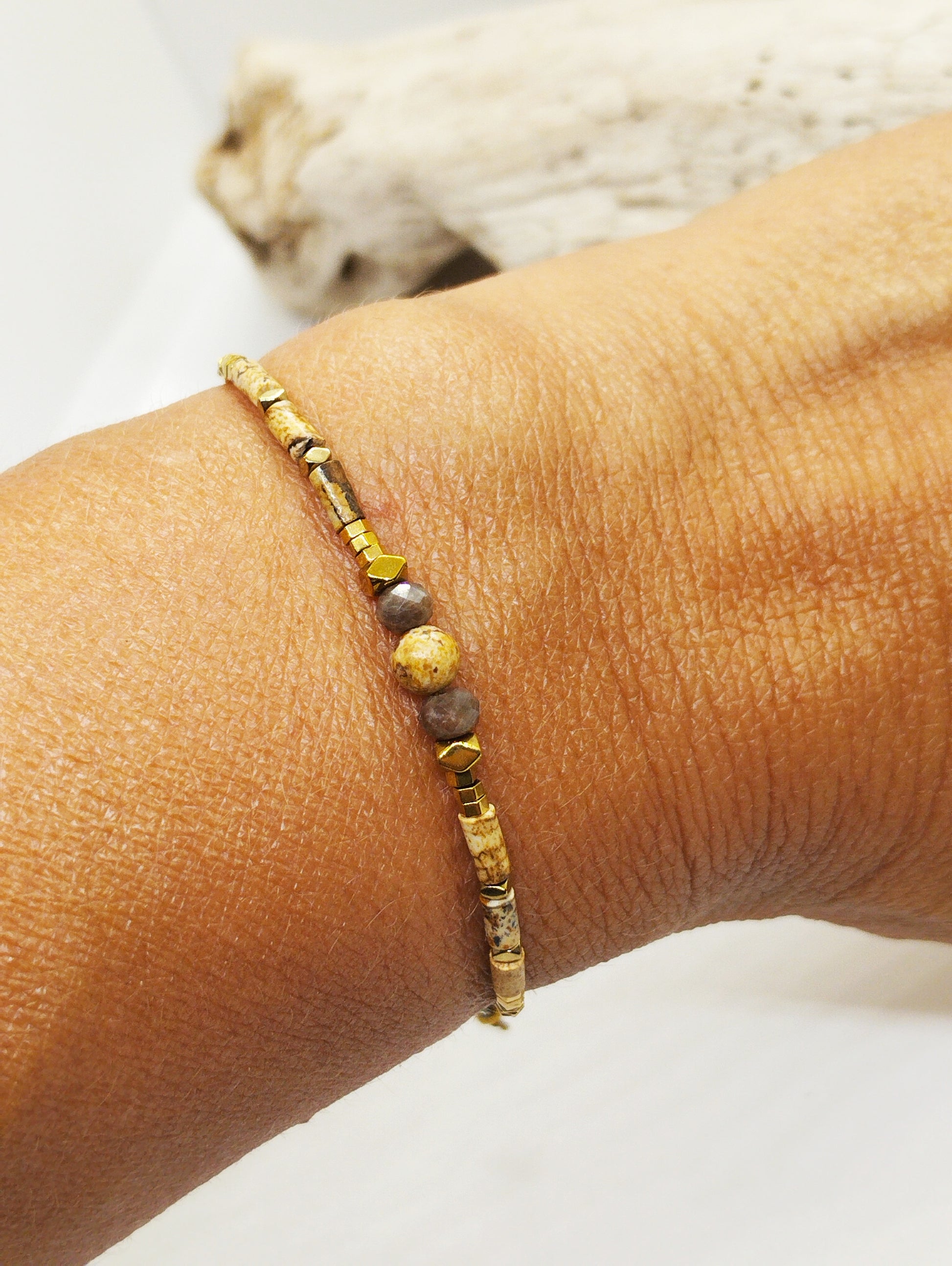 - Sur cordon fil de Jade marron finition nœud macramé coulissant (cordon pendant finition petites perles)