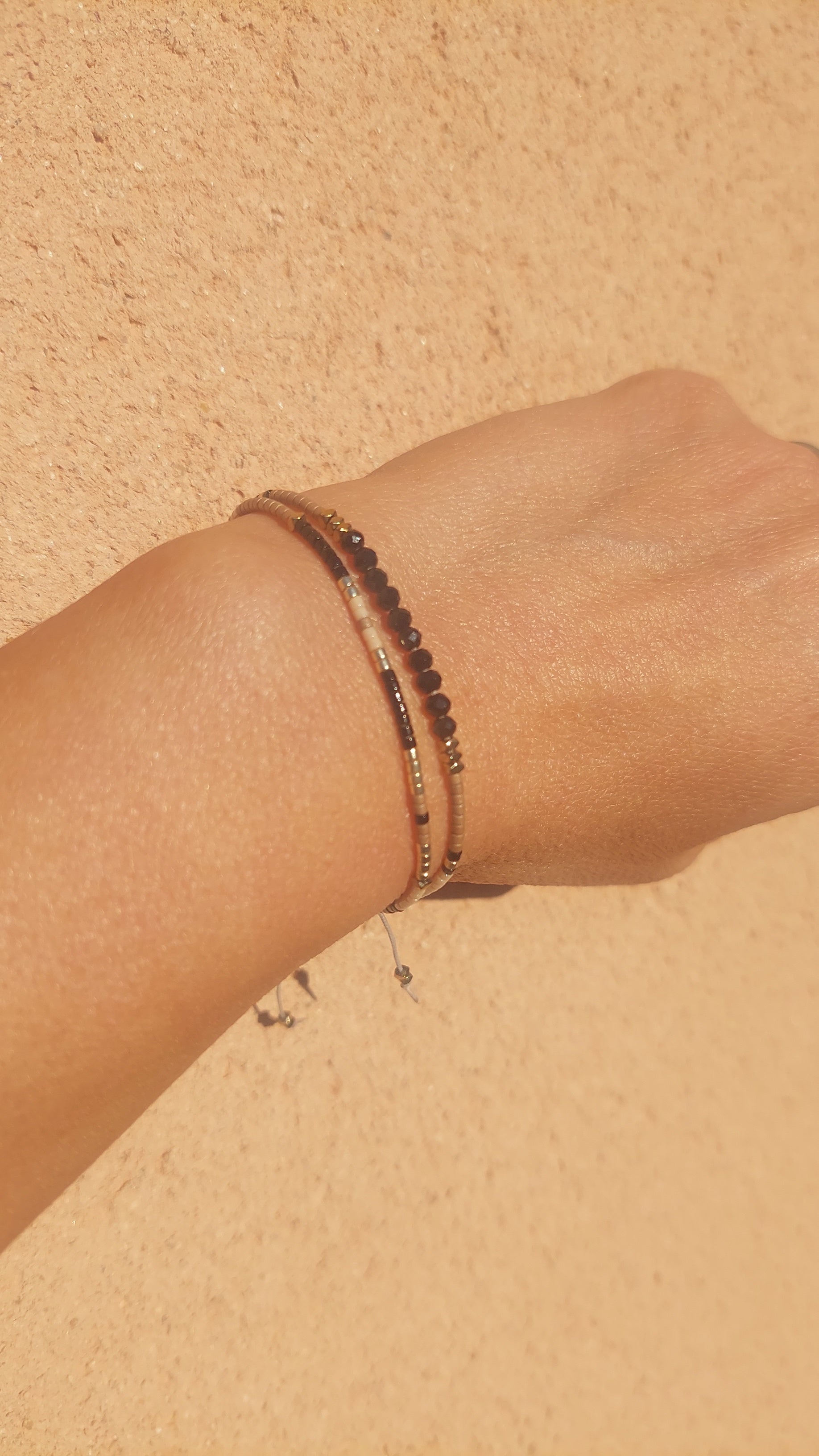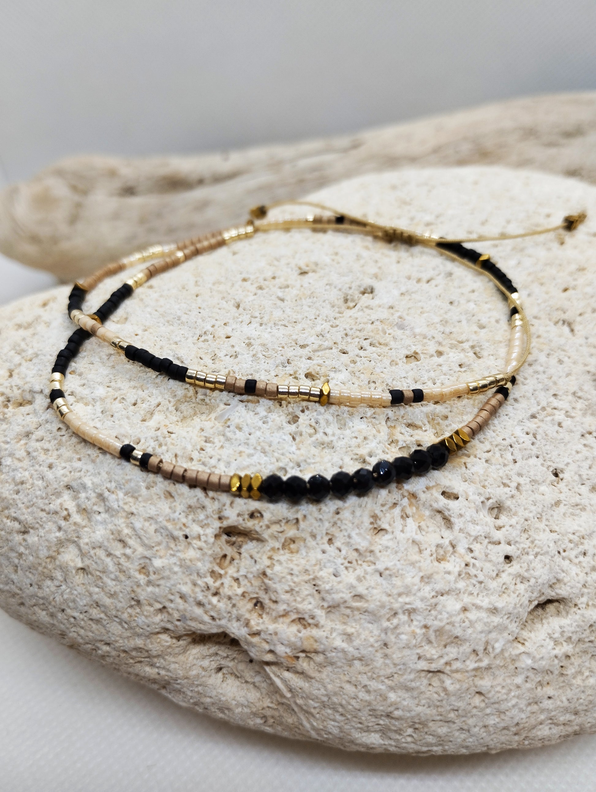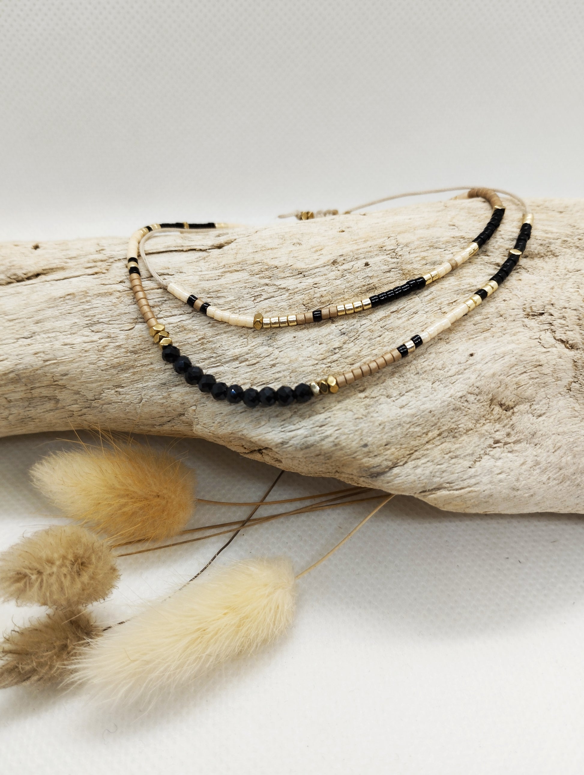 - Sur cordon fil de Jade beige finition nœud macramé coulissant (cordons de réglage pendants finition petites perles)